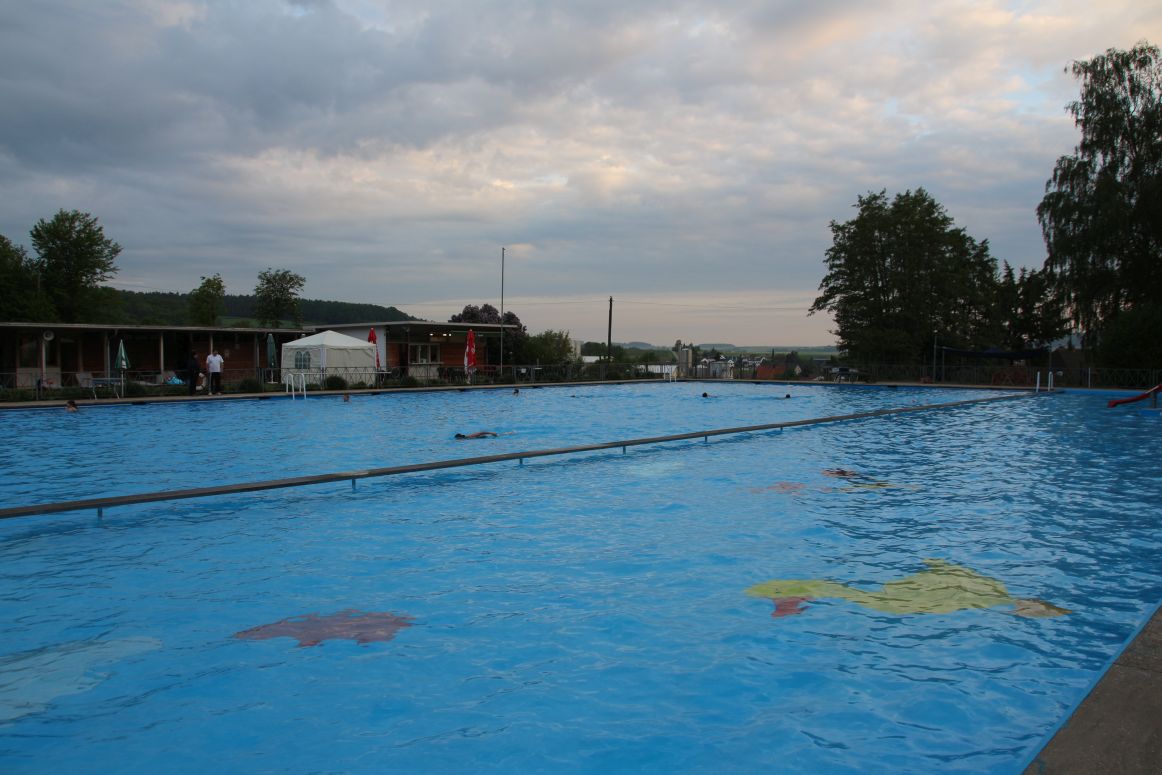 Vor dem ersten Kaffee stand für die Gäste mit der Freibaderöffnung um 6 Uhr morgens allerdings das Anschwimmen auf dem Programm. Rund 20 Schwimmer fanden sich neben Bürgermeister Georg Küttinger bei 14 Grad Lufttemperatur am Beckenrand ein. Angesichts der noch frischen Werte auf dem Thermometer hielt sich Küttinger kurz: „Ich wünsche uns eine schöne Freibadsaison. Los geht’s!“, lautete sein Kommando um 6.10 Uhr. Ob mehr oder weniger ausgeschlafen – der Sprung ins noch ruhige Wasser versprach jetzt für alle einen gehörigen Frischeschub. Der fiel bei 19 Grad Wassertemperatur immerhin noch moderat aus. „Letztes Jahr hatten wir 16 Grad“, stellte Badeaufsicht und Kioskbetreiber Peter Bülles die Vorzüge des diesjährigen Anschwimmens heraus. „Zum Glück war in den letzten Tagen die Sonne da“, meinte er. Betriebsleiter Andreas Laubenstein hatte Ende vergangener Woche die Solarheizung in Betrieb genommen. „Am Dienstag hat sie drei Grad gebracht“, erklärte er die glückliche Fügung, welche die frühmorgendlichen Schwimmfreunde nun zumindest für 100 Meter im Wasser hielt. Für die meisten lockten dann aber schon bereitgelegte Bademäntel, eine Tasse Tee und ein Frühstück am Kiosk. Bülles hatte für alle eisernen Badegäste, die zur Eröffnungsstunde gekommen waren, kostenlosen Kuchen bereitgestellt. Die Marktgemeinde spendierte Kaffee. Derart gestärkt hatte ein Badegast nur lobende Worte für Freibadtechnik und Uhrzeit übrig: „Das Wasser ist gut und war jetzt sogar besser zum Schwimmen als ein paar Stunden später, weil es jetzt im Vergleich zur Luft noch warm ist.“ Das dachten sich offensichtlich einige Badegäste, die nach und nach eintrudelten. Gegen 7 Uhr zeigten sich Küttinger und sein Mitarbeiter Julian Karch, der für die Verwaltung des Freibades zuständig ist, sehr zufrieden: „Viel erfolgreicher geht kaum. Es waren jetzt bestimmt schon 50 Leute im Becken“, schätzte der Bürgermeister.