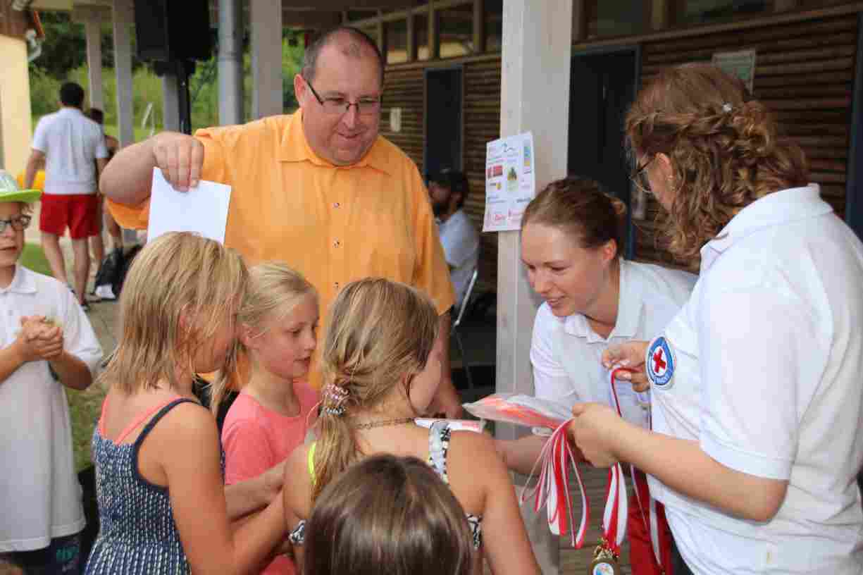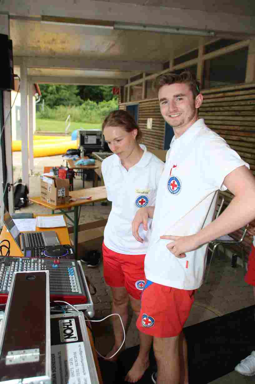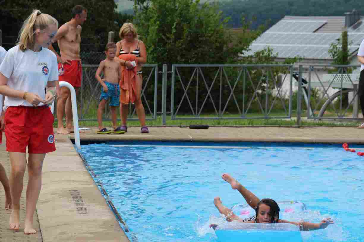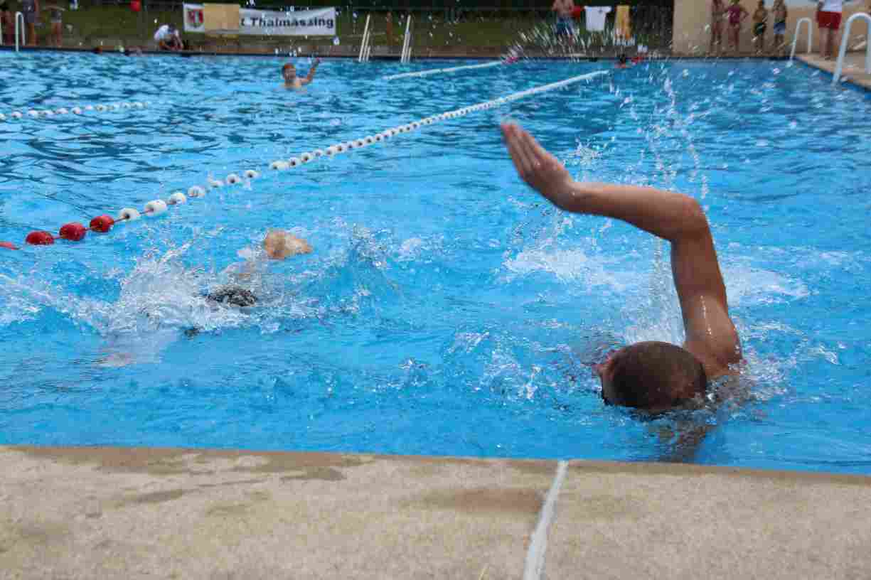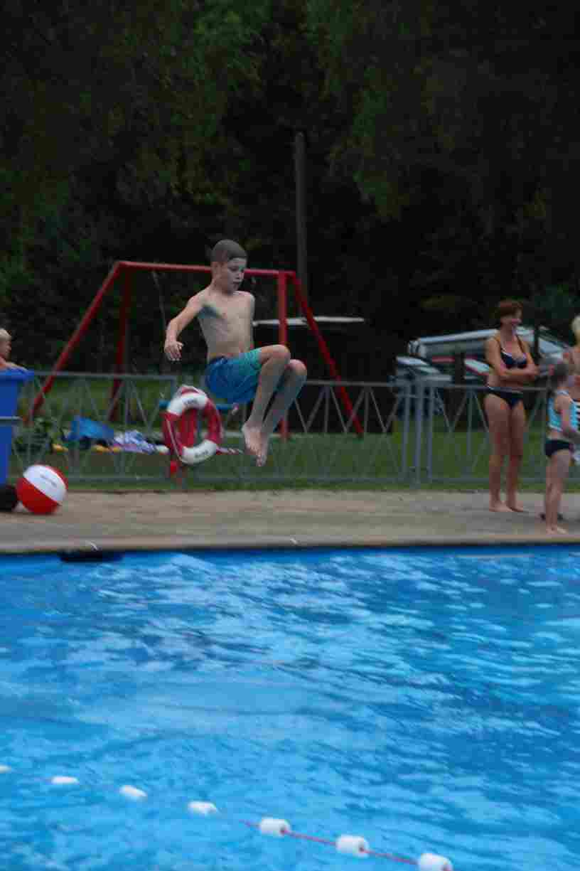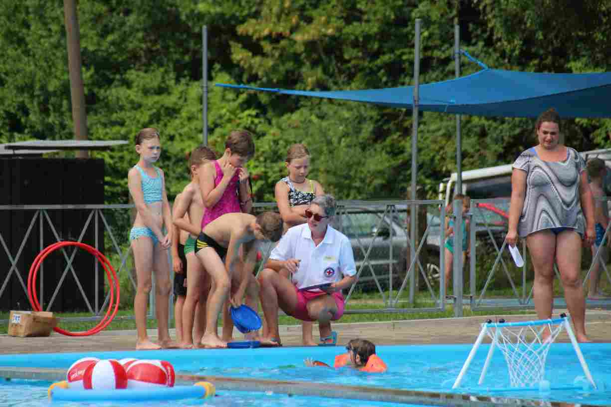 Das erste Badfest mit neuem Konzept wurde mit herrlichem Sommerwetter und einer wahren Besucherschar belohnt. An 9 Spielestationen für Schwimmer und 3 Stationen für Nichtschwimmer gab es zwei Stunden lang allerlei Trubel. Etwa 110 Teilnehmer wagten sich an die Aufgaben. Dabei galt es, beim Sprint Schnelligkeit und beim Balance-Labyrinth Geschicklichkeit zu beweisen. Ein gutes Auge war auch beim Kegeln mit Tauchringen gefragt. Alles Tarieren half beim Frisbee-Zielwerfen manchmal nichts, denn es dauert einige Würfe, bis man den Bogen raus hat. Einige Naturtalente haben wir auch entdeckt: Beim Luftmatratzen-Wettrennen wart ihr nicht nur schnell, sondern auch mit teils perfekter Paddeltechnik am Werk. Mit unkonventioneller Ausrüstung gings bei der Würfelstaffel ins Wasser: Möglichst schnell musste ein Dreierteam eine Warnweste, Schwimmkappe, Flipflops und ein Paar Putzhandschuhe anziehen – schwierig nur, dass das Würfelglück entschied, wann es weitergehen durfte. Um pure Kraft ging es beim Bierfässla-Weitwurf. Die konnte auch bei der neuen Tauchdisziplin nicht schaden: In 30 Sekunden musste eine versenkte Mülltonne unter Wasser möglichst weit geschoben werden. Scheinbar leicht erschien dagegen die Aufgabe, Wasserbälle zu transportieren – wären es nicht 10 für 2 Arme gewesen 🙂
