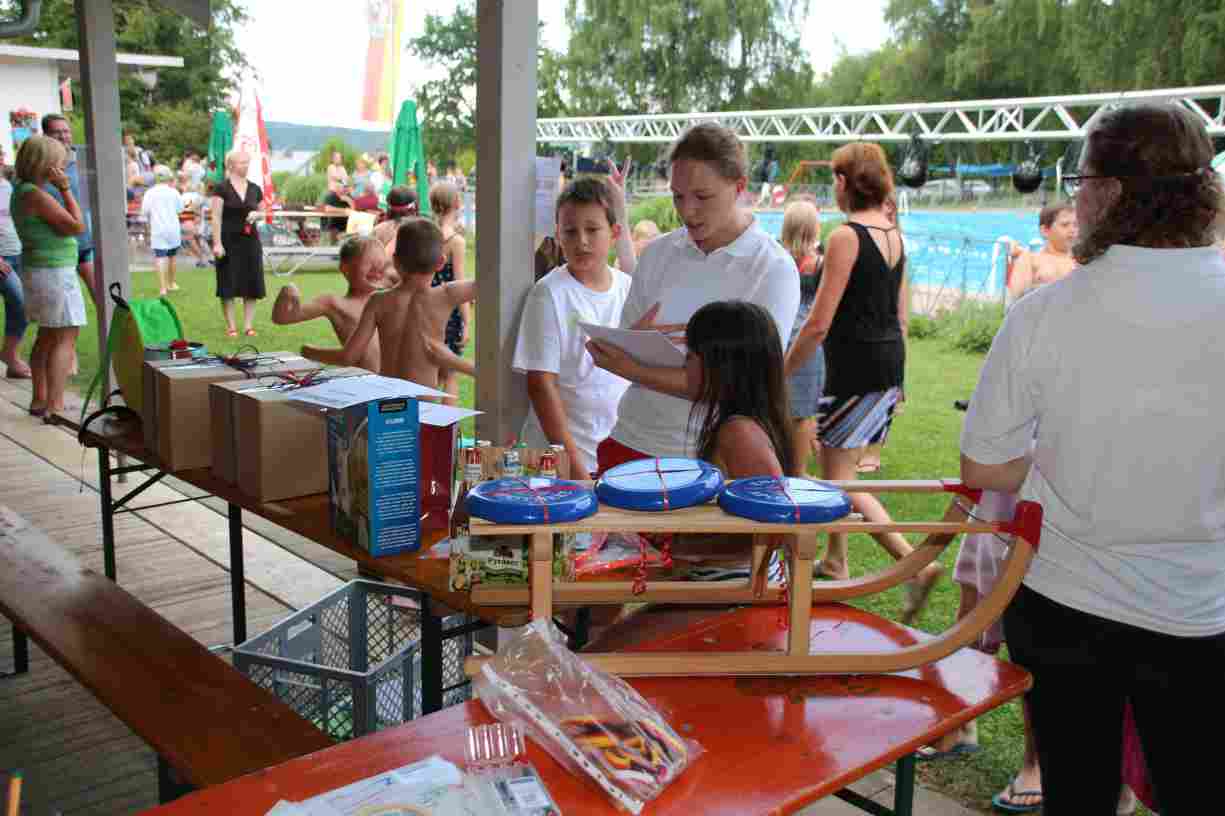 Alle Sieger durften sich über tolle Preise freuen – gesponsort von Spiele-Paten aus den Reihen der Thalmässinger Unternehmer. Ohne diese Unterstützung wäre das neue Badfest nicht möglich gewesen – HERZLICHEN DANK!