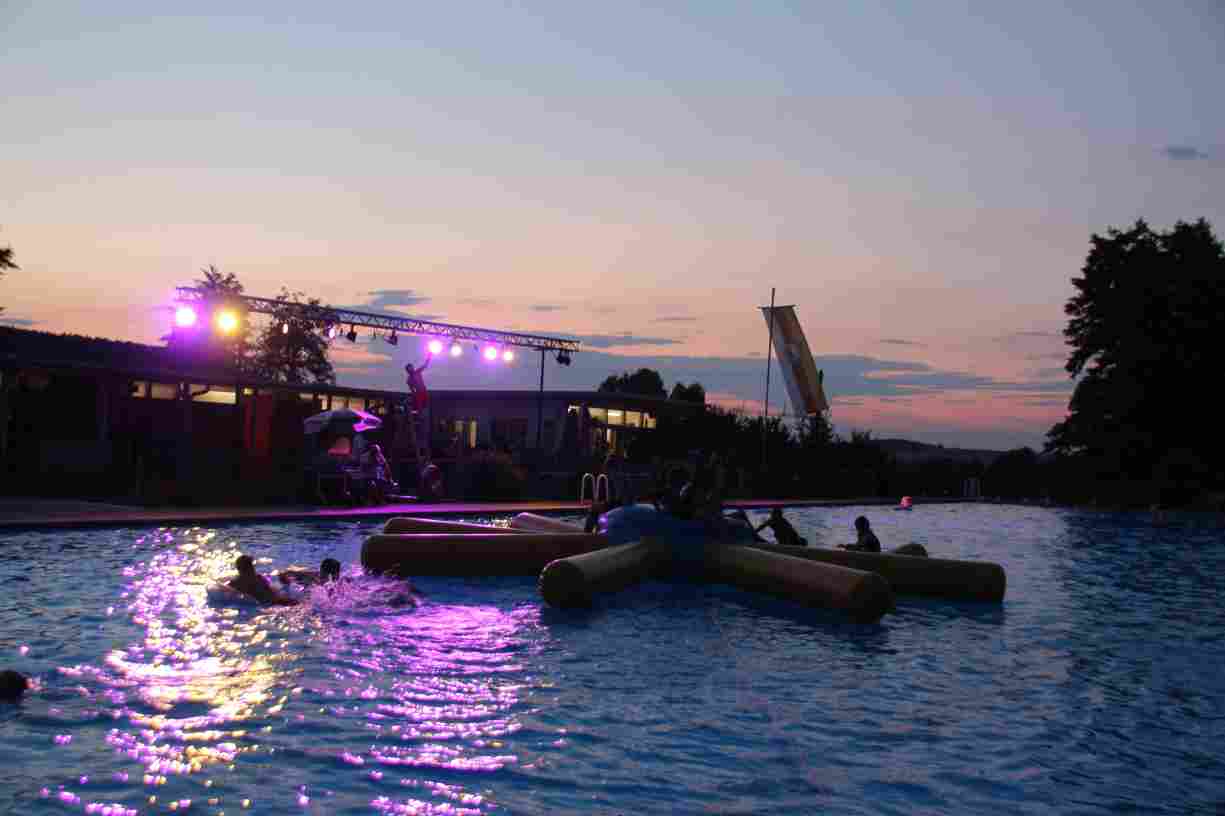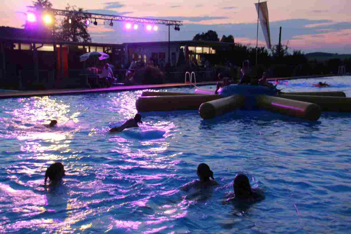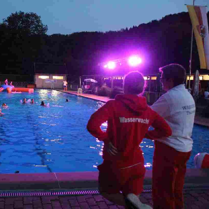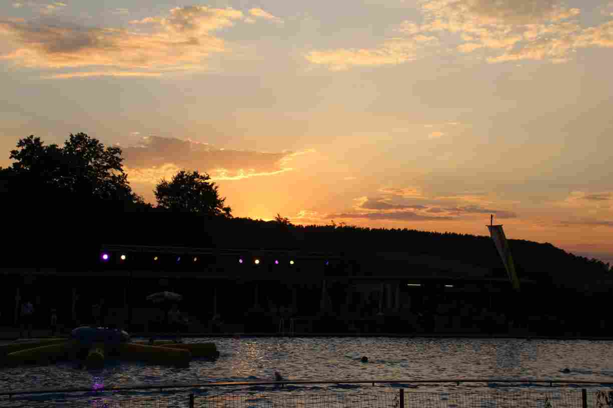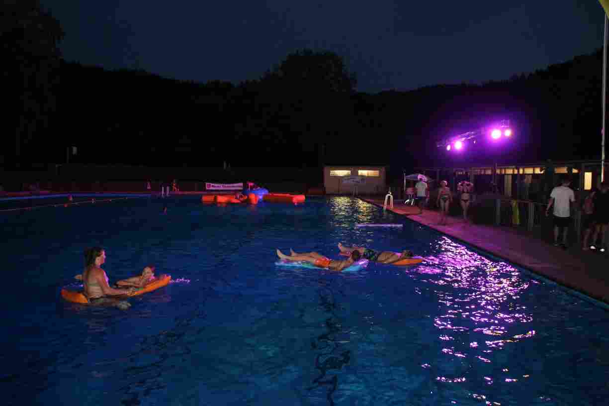 Dank des warmen Sommerabends zog sich das anschließende Nachtschwimmen noch spät in die Nacht, wobei die Mondfinsternis mit dem Blutmond eine ganz besondere Kulisse bot.