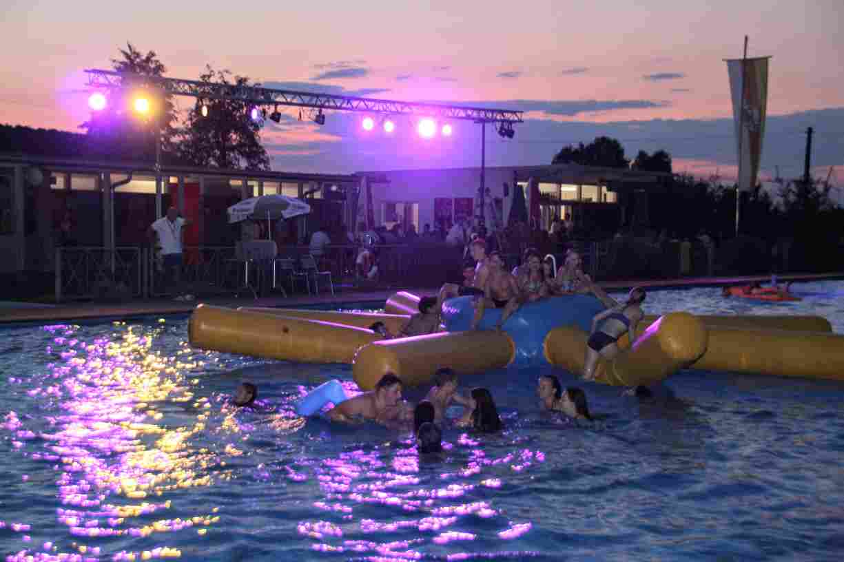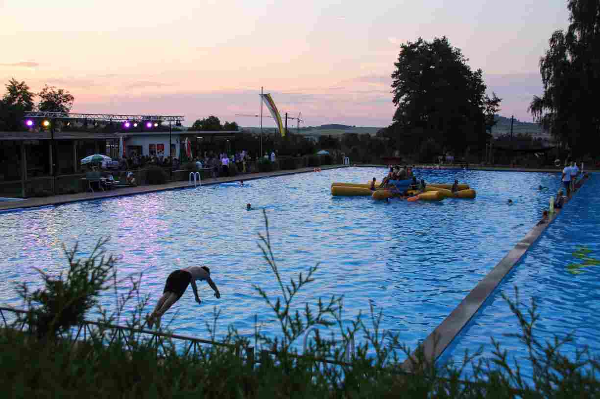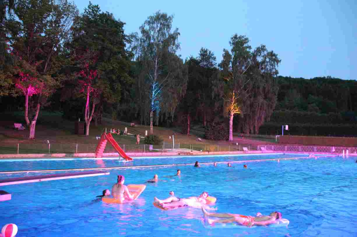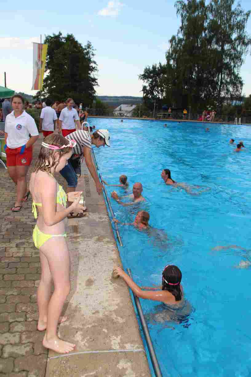 Dank des warmen Sommerabends zog sich das anschließende Nachtschwimmen noch spät in die Nacht, wobei die Mondfinsternis mit dem Blutmond eine ganz besondere Kulisse bot.